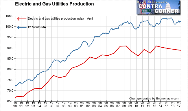 Year to year production was down 0.5%. Does that sound like a growing economy? Looking back 6 months to October, it also showed a decline. Weaker utilities production is not a new phenomenon.