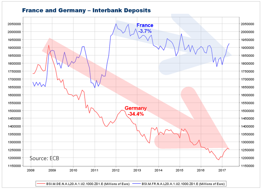 The worst of these interbank runs has been in Germany, where Deutsche Bank’s problems have been well known. France has held up better, but has still had a significant decline in interbank deposits.