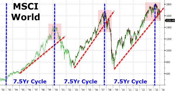 It’s official. More than 50% of the “wealth” effect created from the 2011 lows to the 2015 highs has been destroyed (despite the world’s central banks going into money-printing overdrive over that period). Almost $17 trillion of equity market capitalization has evaporated in just over 6 months with over 40 global stock indices in bear markets…